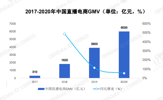 根据前瞻的数据统计,初步测算2020年,中国直播电商GMV(一定时间段内是成交总额)将达到6000亿元左右。资料来源:阿里研究院 公开资料 前瞻产业研究院整理